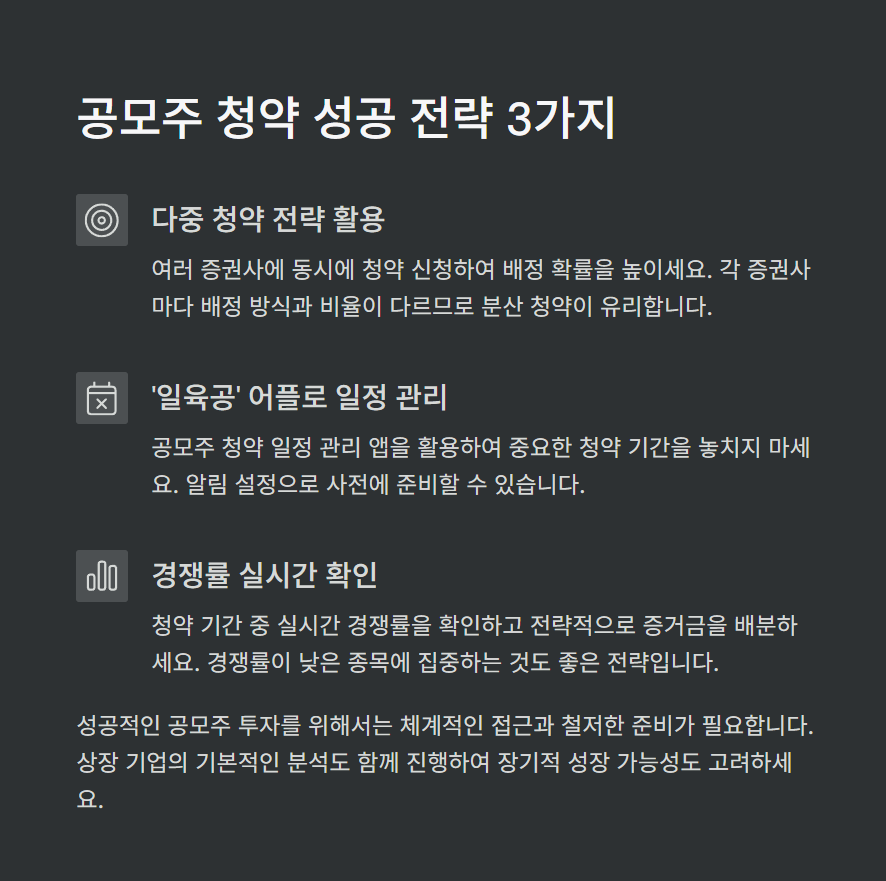 투자 기술과 정보 활용 능력을 꾸준히 길러 공모주 시장에서 성공적인 결과를 만들어보세요.